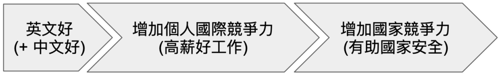 做成下面的因果圖應該能幫助大家理解,為什麼雙語政策會這麼被重視。